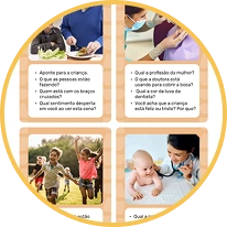 O material é flexível e adaptável, podendo ser ajustado conforme o nível de atenção, compreensão e interesse da criança.
