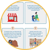 Histórias e situações que favorecem reconhecimento de emoções, perspectiva do outro e interpretação social.